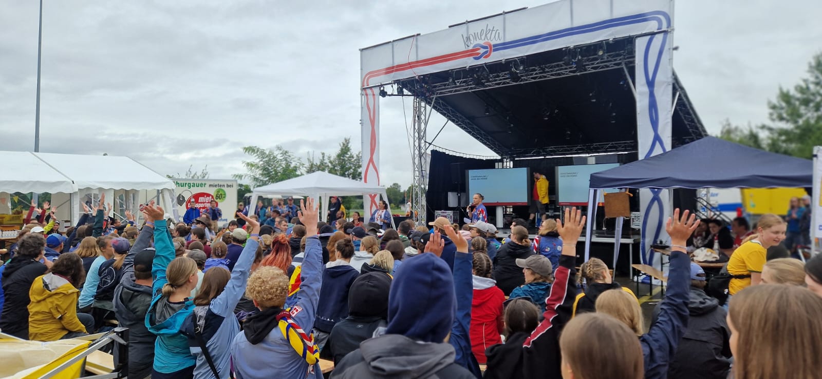 Über 450 motivierte Leitende aus dem gesamten Dachverband Cevi Schweiz reisten an, um am diesjährigem Konekta teilzunehmen. Bereits am ersten Abend erwarteten die Teilnehmenden ein besonderes Highlight: Der Solo-Künstler Aaron Asteria beeindruckte das Publikum mit seinen stilvollen Klängen und sorgte für eine entspannte und zugleich inspirierende Atmosphäre. Für viele stand jedoch nicht nur die Musik im Vordergrund, sondern auch das Wiedersehen mit alten Bekannten – überall bildeten sich fröhliche Grüppchen und erfüllten das gesamte Gelände mit Lachen